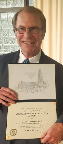 Jack grew up in Audubon, New Jersey, and after high school graduation, he attended Rutgers University in New Jersey receiving a bachelor’s degree in biology and a master’s degree in cell biology. He started his academic career at Gannon University in Erie, Pennsylvania and later received two PhDs from the University of Pittsburgh, one in histology and the other one in gross anatomy. He continued his teaching career for more than twenty years as Director of Medical Anatomy at Pitt Medical School. He was also the Director of Head and Neck Anatomy at the Dental School of the University of Pittsburgh. Dr. Schumann, as his students called him, taught thousands of students during those years. They loved him, admired him, and honored him with hundreds of awards and recognition. Among his many cherished awards are: Pre Clinical Golden Apple Award for Excellence in Teaching (2019), Dean’s Award for Master Education for Outstanding Achievements in Educating Future Physicians (2020), University of Pittsburgh Distinguished Service in Medical Education (2021), and Best Course Director (Medical Anatomy) as an Emeritus Professor (2023).